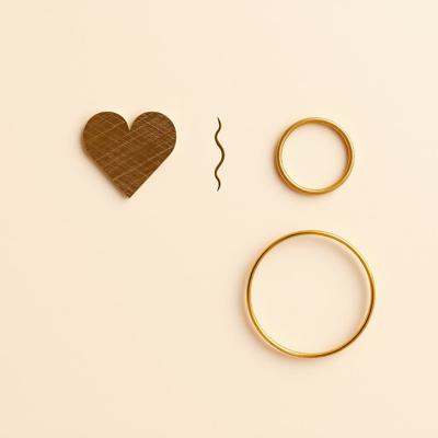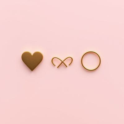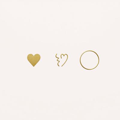Она спокойном пастельном фоне приглушённо золотом- простые графичные символы: сердечко, разбитое сердечко, знак бесконечности, пустой Круг