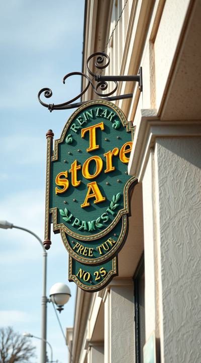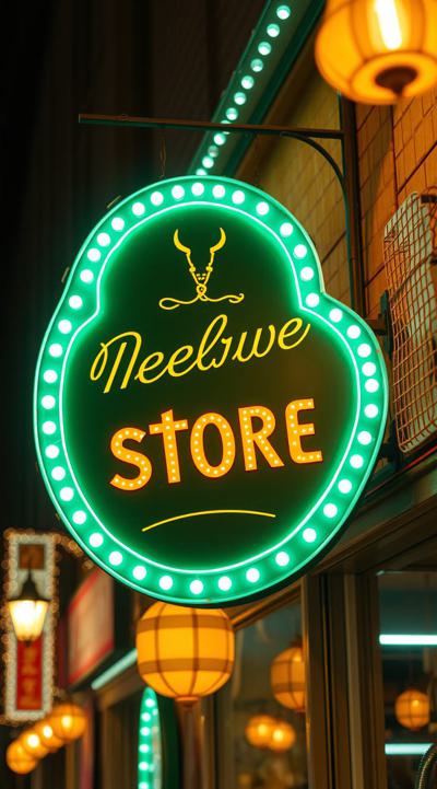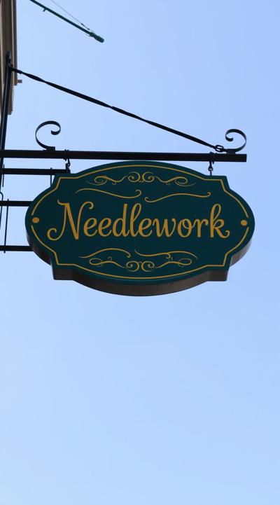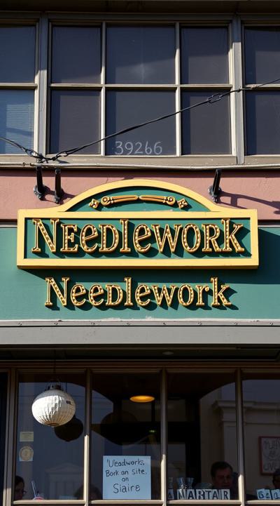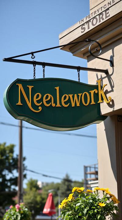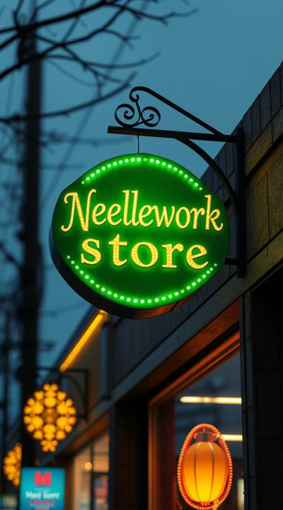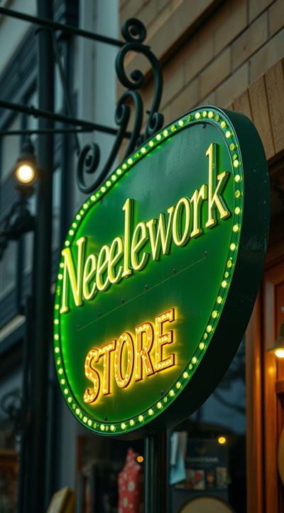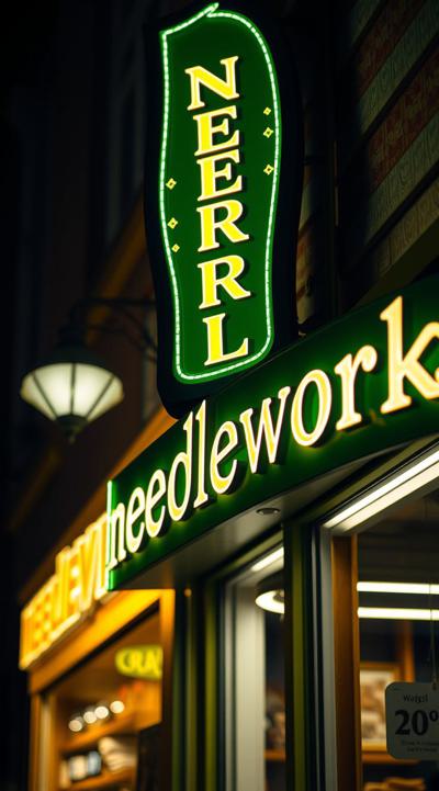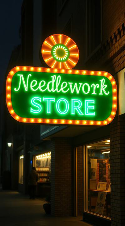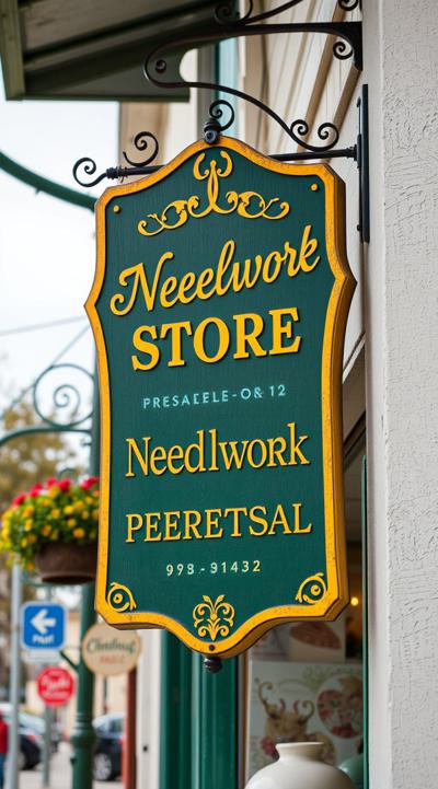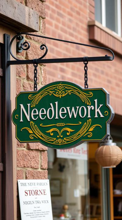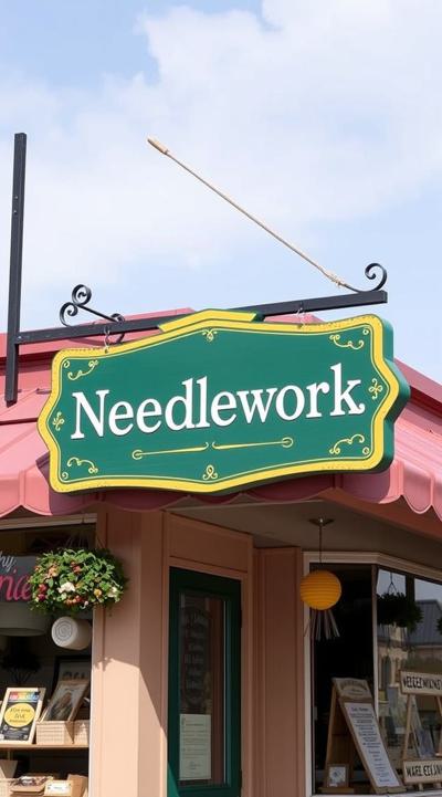 Вывеска магазина рукоделия в зелено-желтом цвете