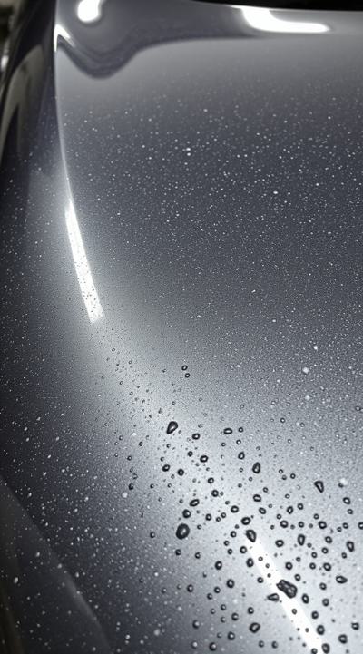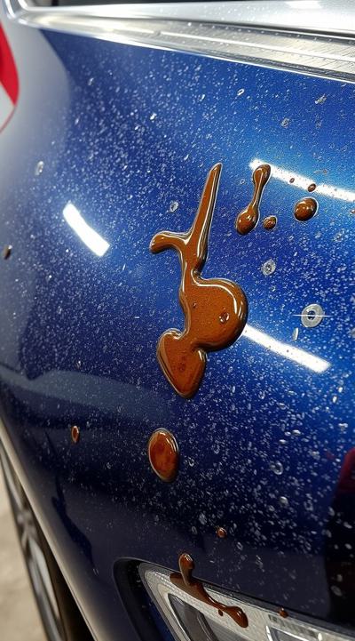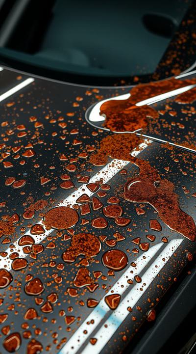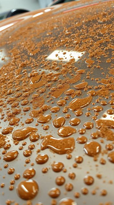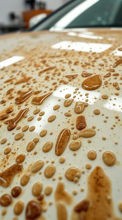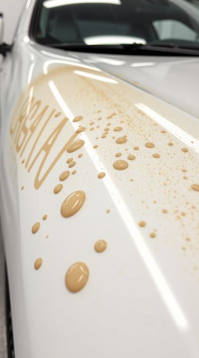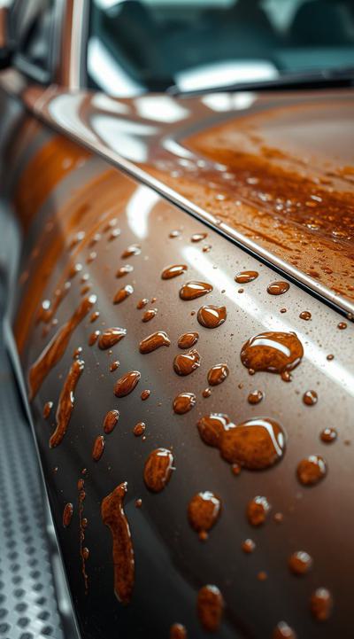 Создай изображения полиуретановой плёнки которая грязная, под пленкой на машине много коричневых капель в детейлинг центре