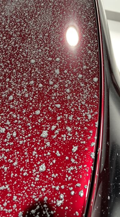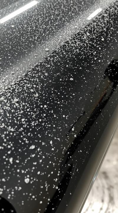 Создай изображения полиуретановой плёнки которая грязная, под пленкой на машине много точек, которые похожи на звёздное недо, в детейлинг центре