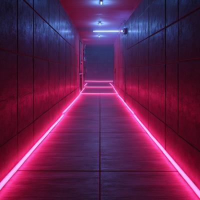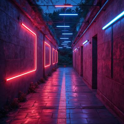 сделан гибкий неон в тратураной плитке , в вечернее время с прямыми линиями от начала до конца , без углов просто прямая дорожка подсвеченная гибким неоном