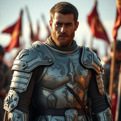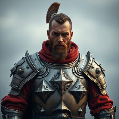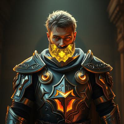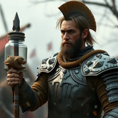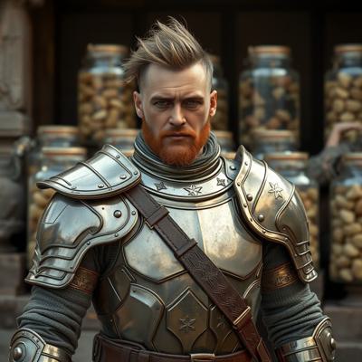 сделай изображение где мужчина будет в броне из баночек пемолюкса