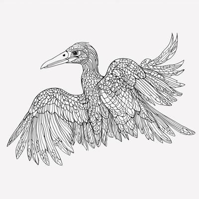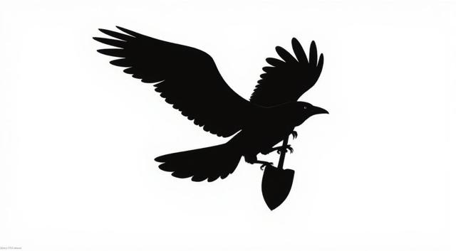 хвост и крылья острее [Уточнение для #6212806 'ворон с клиновидным хвостом летит и несет лопату в лапах черный силуэт на белом фоне ]'