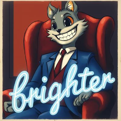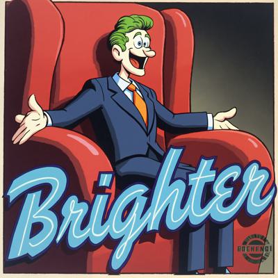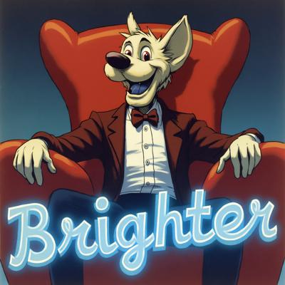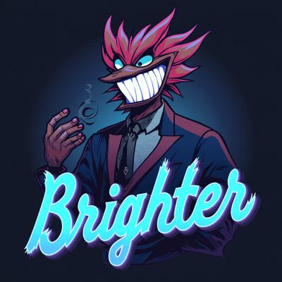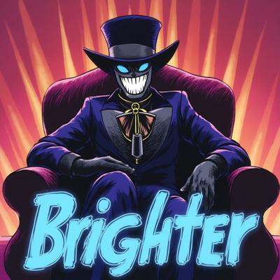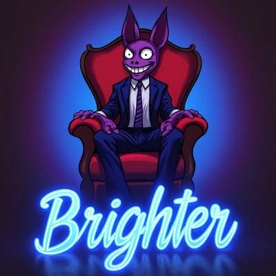 Вокс из Отеля Хазбин,сидит на троне и улыбается широкой улыбкой.НА переднем плане надпись ЯРЧЕ в неоновом стиле в ярко голубом цвете.