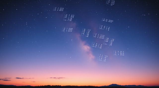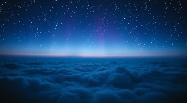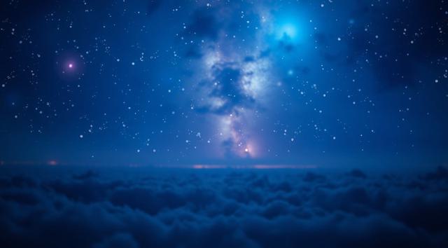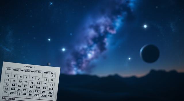 Serene night cosmic background, no stars. Deep blue and violet nebula clouds, faint amber edges, cold atmosphere, no pink. Distant dark planets. Multiple depth layers: out-of-focus calendar sheets in foreground, sharp midground sheet, many blurred tiny sheets in deep background. Vintage Soviet tear-off calendar paper, extremely faded and weathered, washed-out yellowish-gray, no lines, no drawings. All sheets are completely blank with no numbers, text or marks — except one single sheet in midground showing only a worn faded black digit 3. Soft focus, strong depth of field, dreamlike, ultra HD, 8k., absolutely no numbers on any other pages