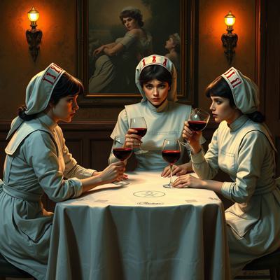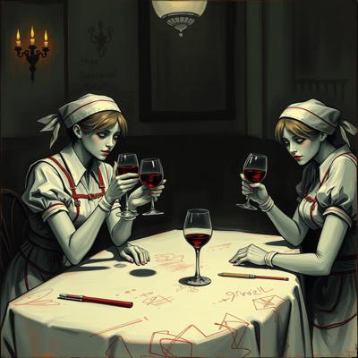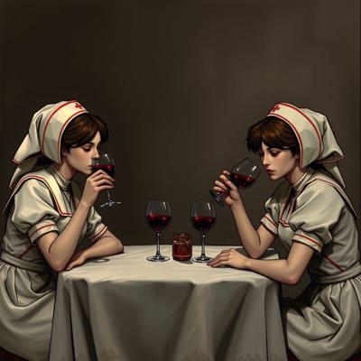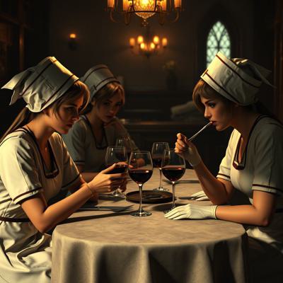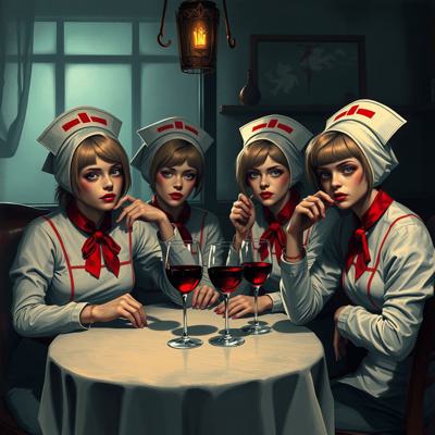 медсестры из сайлент хил 2 сидят за столом и пьют вино