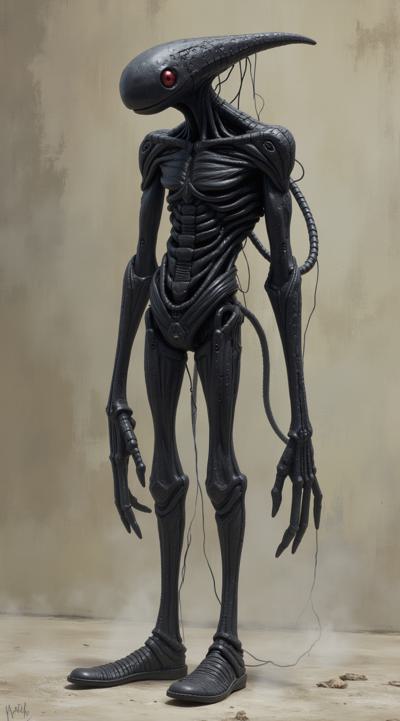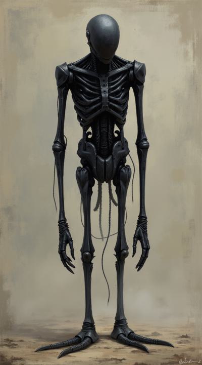 черненькое. Полностью, от макушки до обутых в тряпичные тапочки ступней. Похоже на человека долговязую фигуру с двумя парами… хм, локтей на длинных и тонких верхних конечностях. Ноги, к счастью, у существа обычные одноколенные, хотя тоже чрезвычайно длинные и тонкие., Еще у этого создания круглое лицо, короткие курчавые волосы и длинный, печальный нос. Про рот с двумя рядами верхних и двумя рядами нижних зубов я уже говорила, кажется…, Зато глаза: просто, вау! Огромные, с ярко-фиолетовой радужкой и длиннющими ресницами. Вполне человеческие глаза, не считая цвета., Одето существо в серенькую до колен и без рукавов тунику, перепоясанную почему-то скрученной толстой веревкой.
