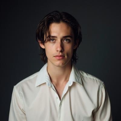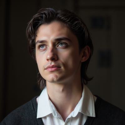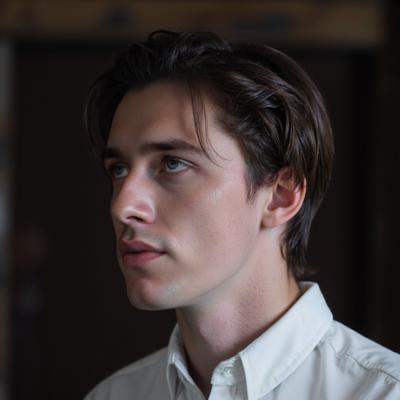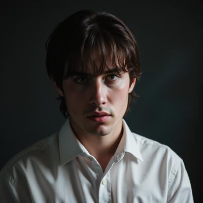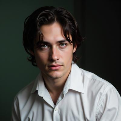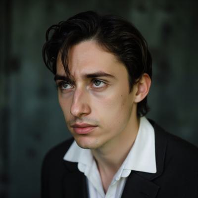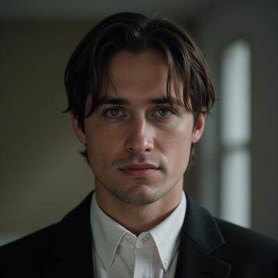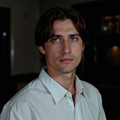 Мужчина средних лет, среднего роста, темные волосы до плеч, остроконечная борода, карие, почти черные глаза, острый взгляд, саркастичная улыбка и недовольное, строгое лицо, начальник отдела в Министерстве Магии, сделать, как кадр из фильма