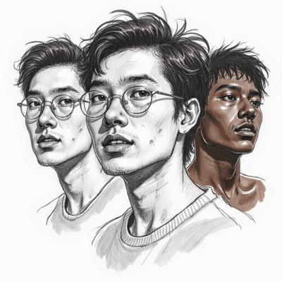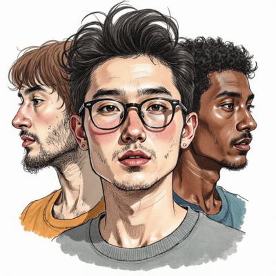 изображение представителей разных рас. Европейский мужчина , китаец , негр