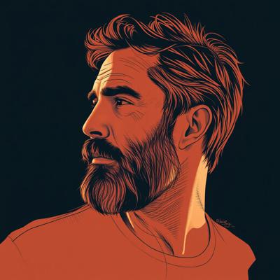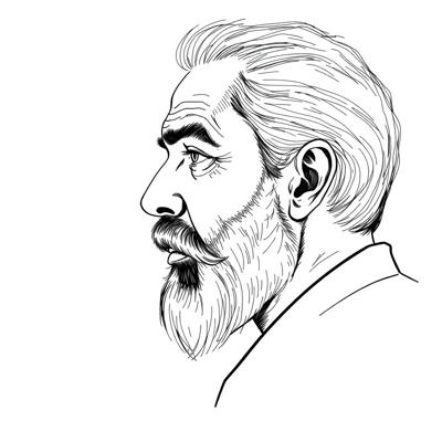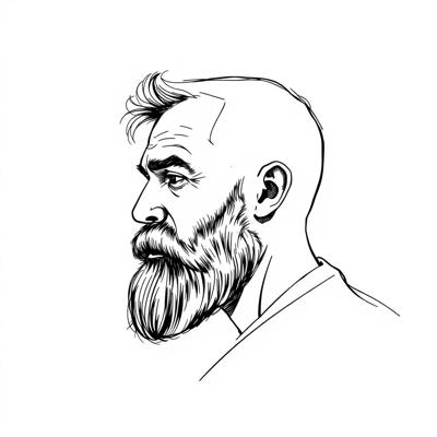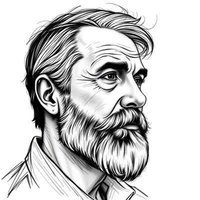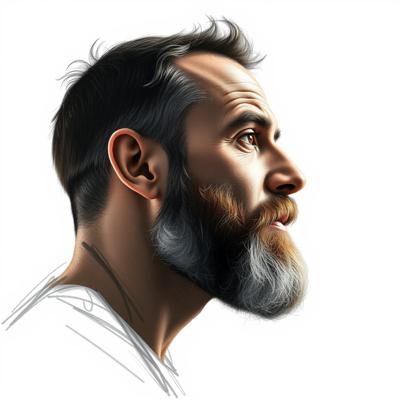 Мужчина средних лет с бородой в профиль набросок