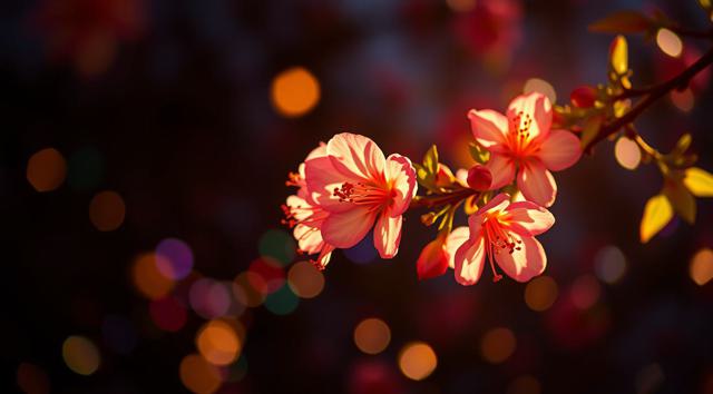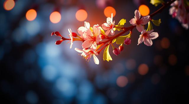 Яркость и Преображение (фотография вспышки цвета и жизни: цветущая ветка на контрастном фоне, праздничные огни, а. Чувство радости и обновления.)