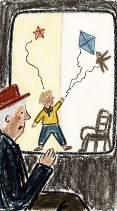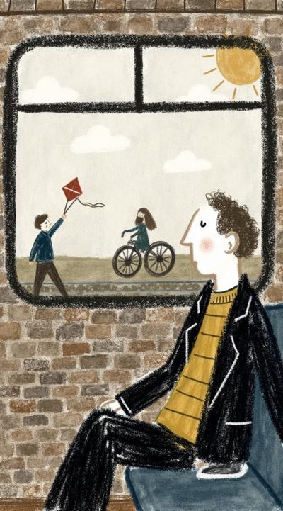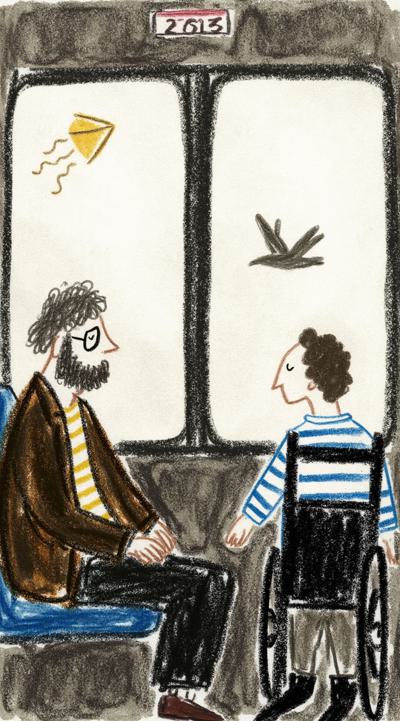 Поезд медленно плывёт сквозь туман. В купе — пожилой мужчина смотрит в окно. Слева на стекле — его детство: мальчик запускает воздушного змея в золотом свете. Справа — будущее: пустое кресло-коляска у окна. Дождь стекает по стеклу, размывая образы. В отражении — разные версии его самого. Множество времён, эмоционально, сюрреализм, чёрно-белое с тёплым оттенком в воспоминаниях, кинематографично, 4K