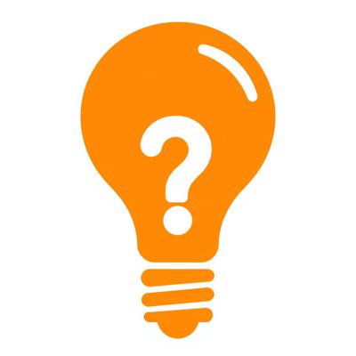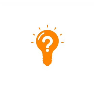 Иконка «Совет». Оранжевая лампочка (силуэт), внутри – белый вопросительный знак. Минималистичный плоский дизайн, простые геометрические формы. Белый фон. Без текста. Векторная графика.