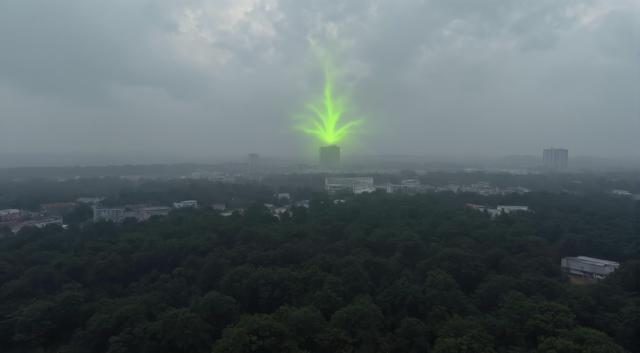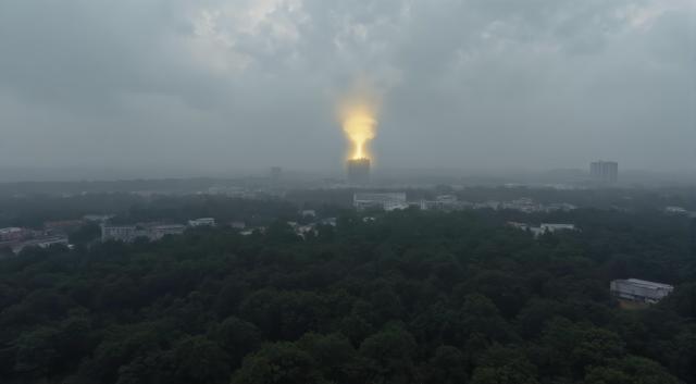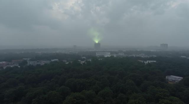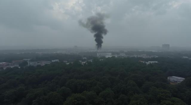 Добавить дыма в картинку. Создать иллюзию радиации [Уточнение для #6313012 'минималистичный пейзаж. Вид с вертолёта. Темные плотные тучи над поражённой радиацией местностью. местами виден дождь. Дикий лес между деревьями местами видны заброшенные серые дома многоэтажки [Качество x3 ]]'