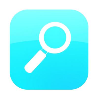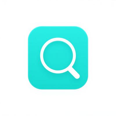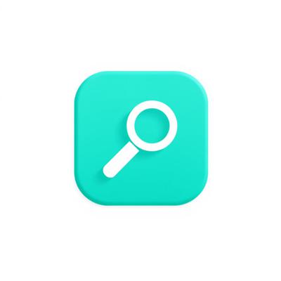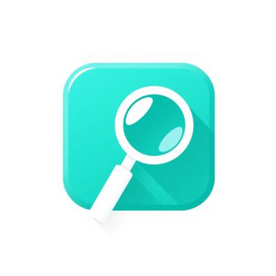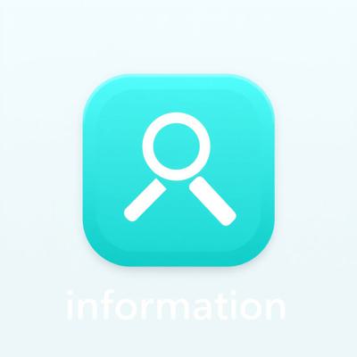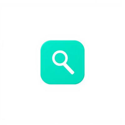 Иконка «Информация». Бирюзовый квадрат со скруглёнными углами, внутри – белая лупа. Минималистичный плоский дизайн, чистые линии. Белый фон. Без текста. Векторная графика.