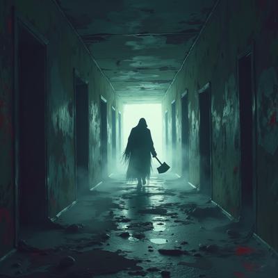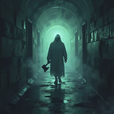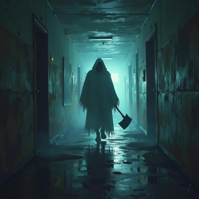 Призрак идет с топором по длинному коридору