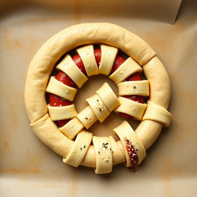 Сосиски в тесте лежат на противень как пирамида, и посыпанные белым и черным кунжутом, сделаны Сосиски в тесте, его тесто полоской во круг сосиски. В стиле нарисованный. Для кулинароной книги. Без фона, как стикер обрезанный.