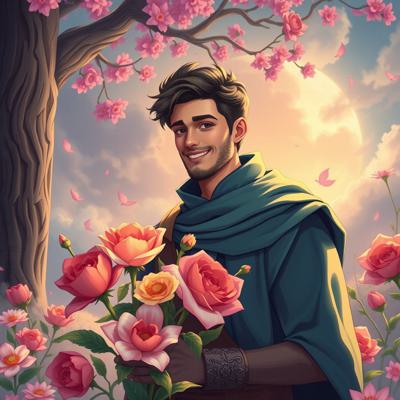 герой говорит о том, что счастлив и считает, что Бог послал ему возлюбленную, и он готов сорвать все цветы на свете, чтобы она открыла ему своё сердце. ,