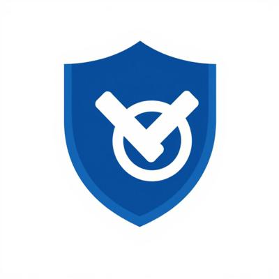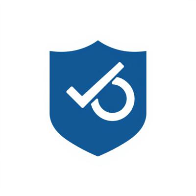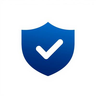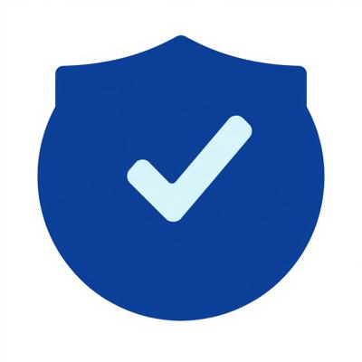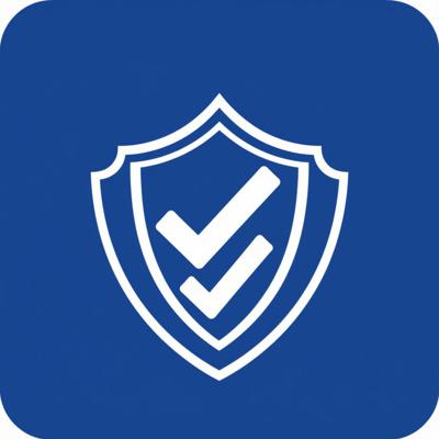 Иконка «Проверка». Тёмно-синий щит, внутри две белые галочки одна над другой. Плоский дизайн, простые формы. Белый фон. Без текста. Векторная графика.