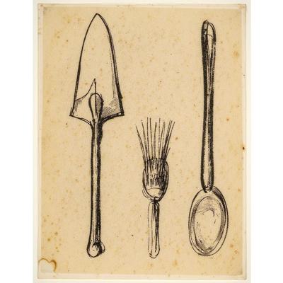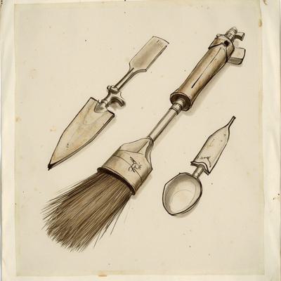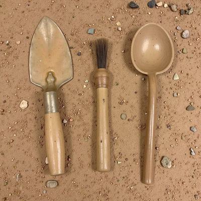 Археологический мастерок, археологическая кисточка и ложка