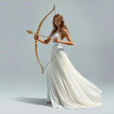 Дорисовать тетиву [Уточнение для #6198580 'убрать на спине девушки золотой лист [Уточнение для #6198567 'в руке держит золотой лук со стрелой [Уточнение для #6198566 'сделать тонкий золотой шелковый пояс. Надеть на голову золотой тонкий ободок. [Качество x3 [Уточнение для #6198510 'длинное белое платье похожее на платье Дианы-охотницы ]']]']']'