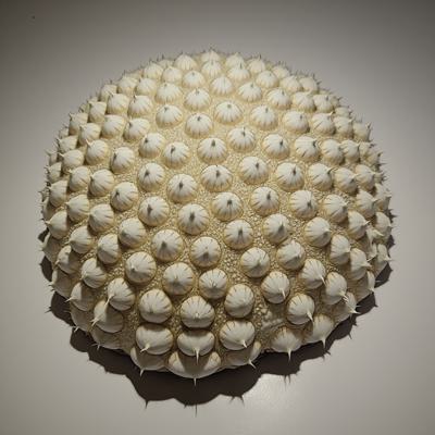 небольшое мягкотелое животное диаметром 1–5 см, по форме отдалённо напоминающее гибрид морской губки и миниатюрного морского ежа., , Основные черты:, , Очертания тела. Неправильная сферическая или слегка сплюснутая форма без чётко выраженных отделов. Контуры неровные, бугристые — из‑за многочисленных выростов и иголок., , Поверхность. Вся покрыта множеством тонких жёстких иголочек длиной 2–8 мм. Иголки растут густо, почти без просветов, создавая эффект «колючего шара». У основания каждой иголки заметна небольшая утолщённая капсула — резервуар с кислотой.