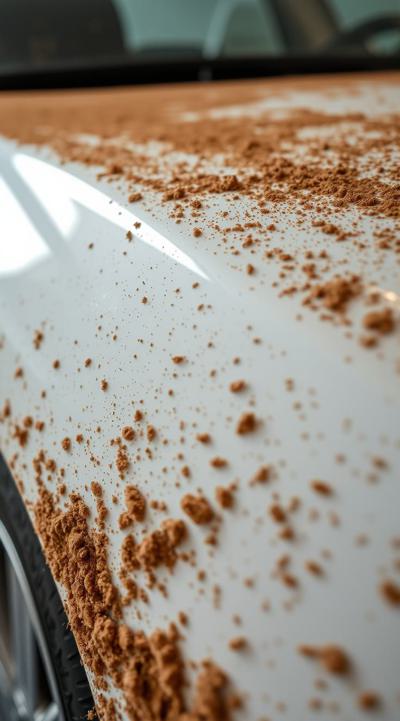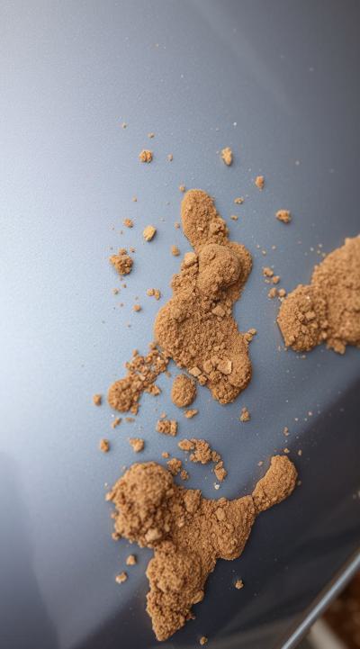 Создай изображения полиуретановой плёнки которая грязная, под пленкой на машине много коричневой грязи, которая похожа на какашки в детейлинг центре