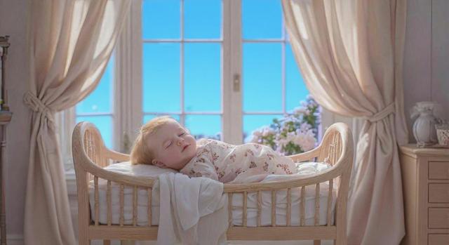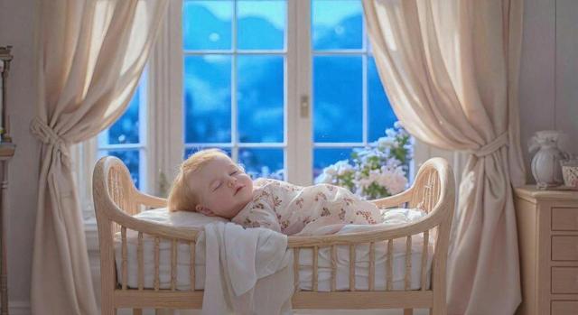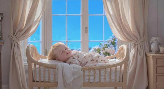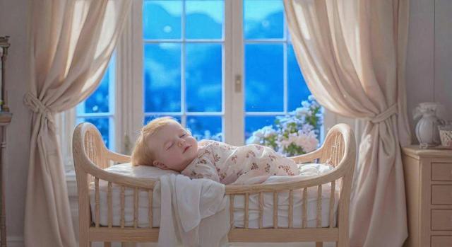 Голубое небо [Уточнение для #6118132 'За окном пурпурные горы [Уточнение для #6118118 'Убрать цветы [Уточнение для #6118116 'Убрать подушку [Уточнение для #6118114 'Красивая комната, светлое дерево, стены обтянуты светлым шёлком, на окнах лёгкие занавески, в углу комнаты стоит колыбель, в колыбели лежит младенец, очень красивый, красивая одежда, золотистые волосики, спит, над колыбелькой в воздухе висят погремушки, за окном пурпурные горы, голубоватый солнечный свет заливает комнату [Качество x3 ]]']']']'