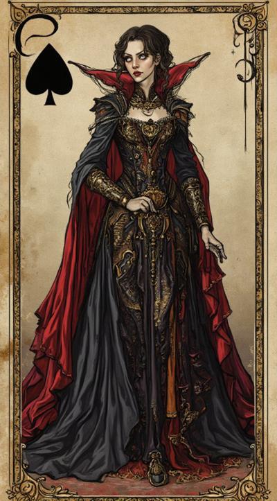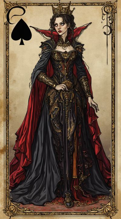 сделайте ее старше уберите корону наденьте лохмотья [Уточнение для #6021693 'карта пиковая дама противная злая враг сплетница соперница ]'