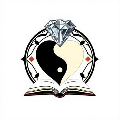 инь янь, ромб над сердцем [Уточнение для #6307542 'круглый логотип, сердце в виде раскрытой книги, инь и янь, учеба, самопознание, космос, любовь, наука ]'