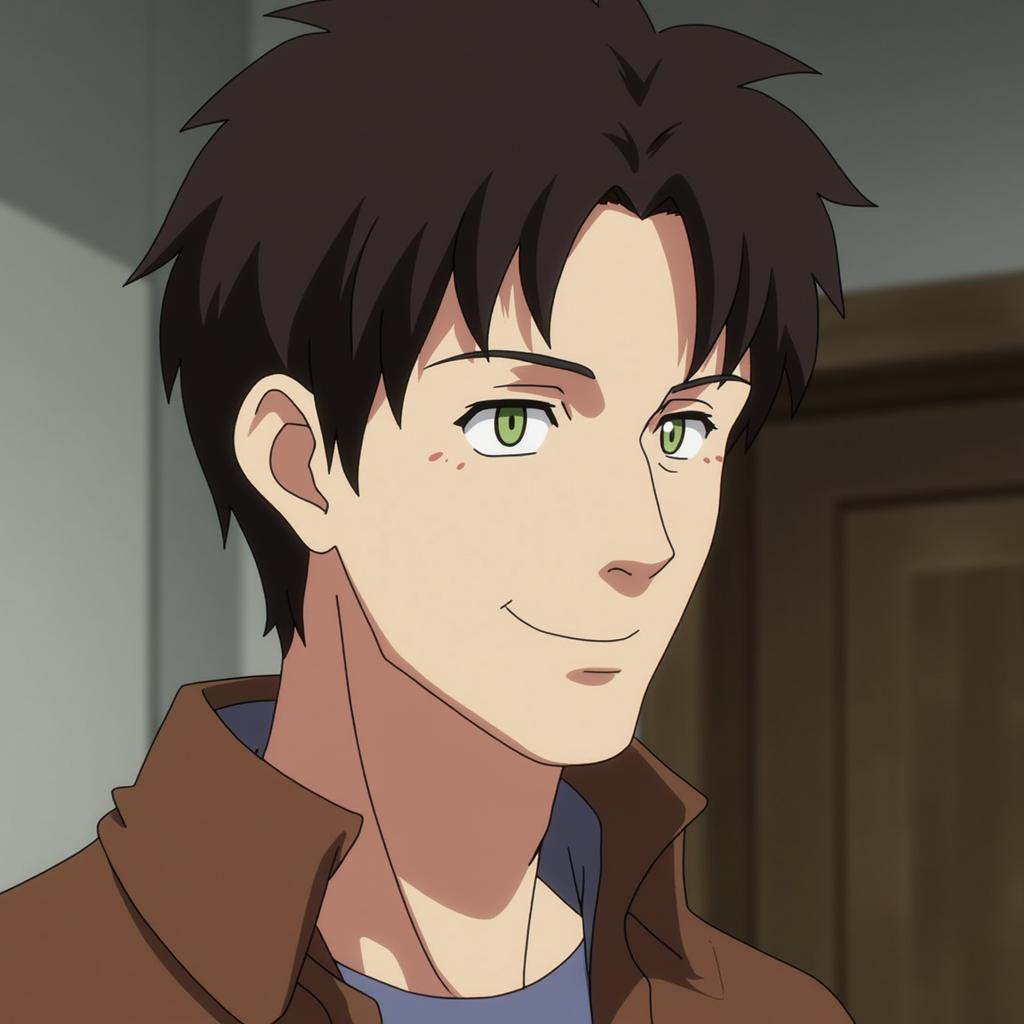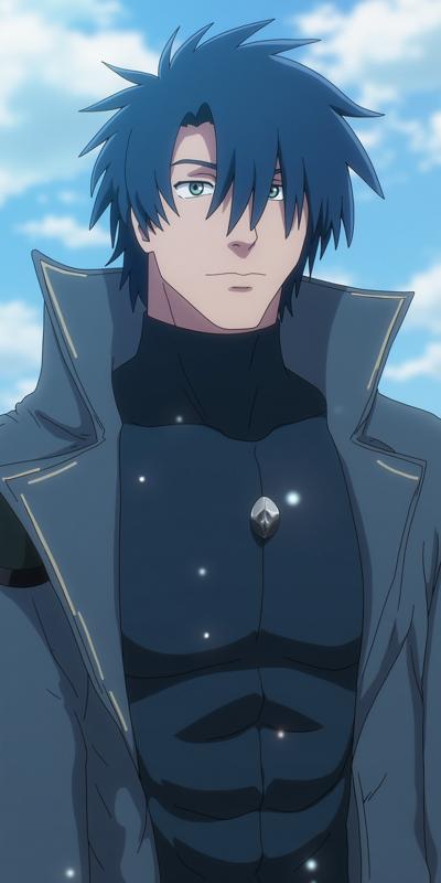 Нарисуй мужчину ниндзя из страны Морозного Болота из альтернативной вселенной "Наруто". Ему 28 лет, он первоклассный ниндзя. Телосложение среднее, атлетическое, но без излишней мускулатуры. Волосы холодно-синего цвета, немного растрёпанные, средней длинны, с несколькими прядями, падающими на лицо. Глаза глубокие, тёмно-синие, с холодным, внимательным взглядом. Высокие скулы, средне-широкое лицо, ямочки на щеках.