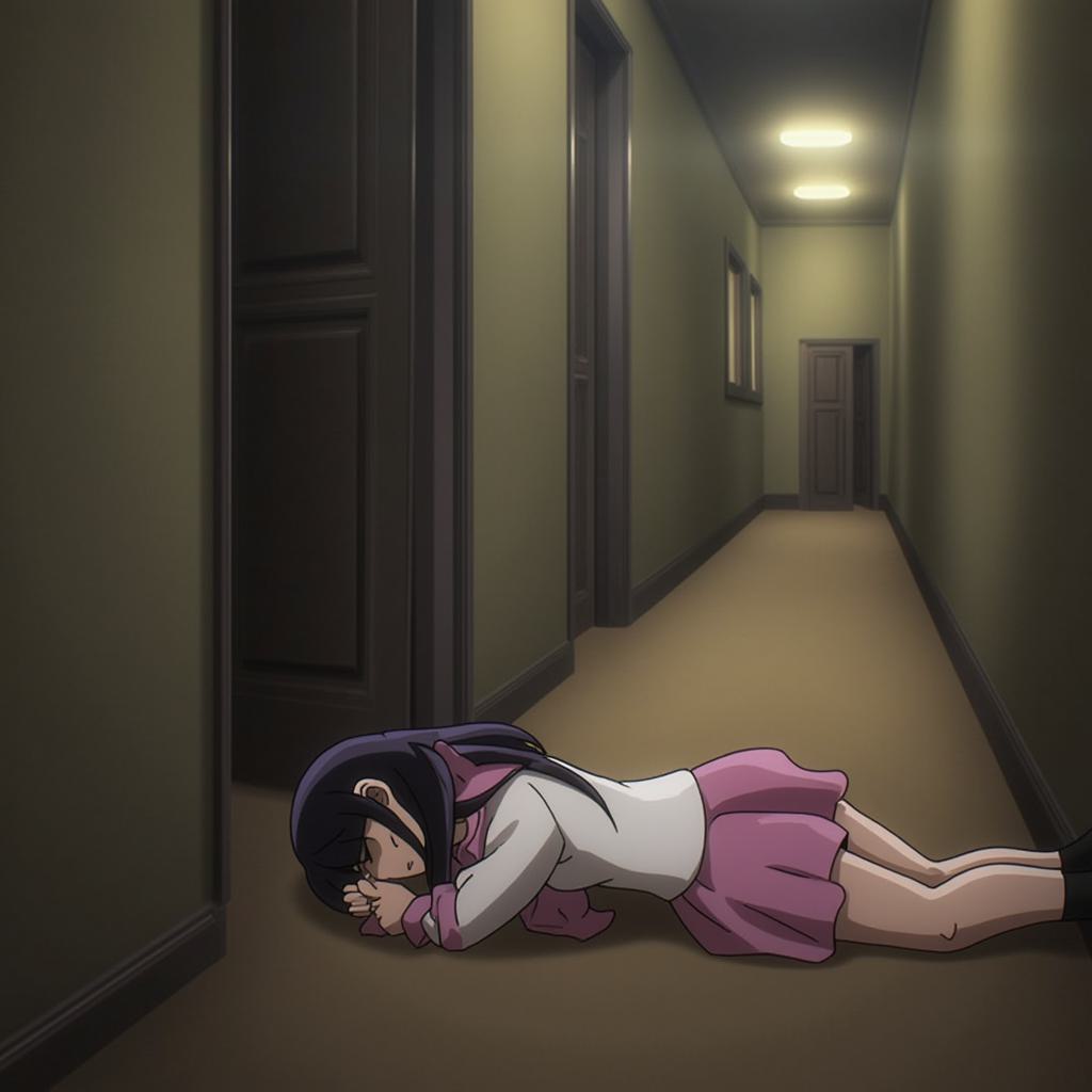 character design, Ayaka, femme fatale, Japanese, long black hair in a severe ponytail, flawless makeup, wearing a stylish grey pencil skirt and blazer suit, shirt unbuttoned, showcasing cleavage and the strange mark on her neck, the mark looks like a delicate, permanent tattoo of converging dark lines or a microscopic black hole singularity on her skin, attractive and dangerous, full-length portrait, anime style, dynamic pose
