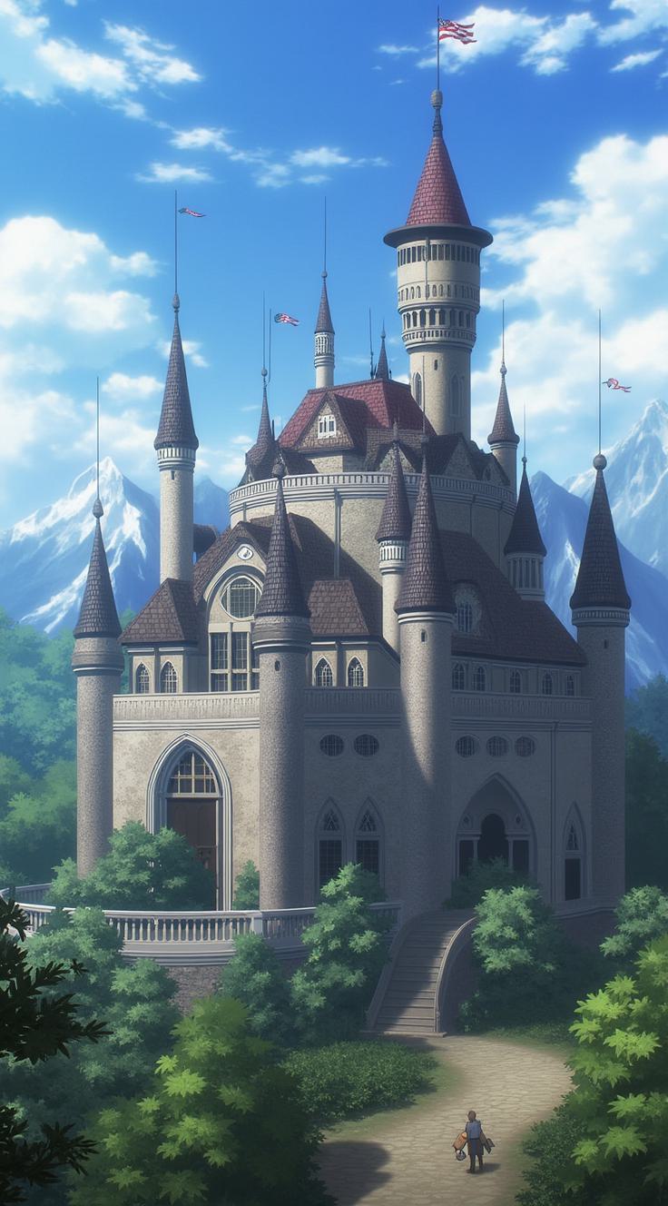 средневековый дворец в средневековом городе. дворец поражает своей высотой и стройностью. он как будто воздушный, тончайшие башни и резьба, красивейшие арки, множество архитектурных деталей, , вокруг дворца видно немного город, дома ниже чем дворец., , на изображении красивейшая, спокойная, умиротворяющая зима. в башенке дворца свет и видно два силуэта, атмосфера покоя и уюта