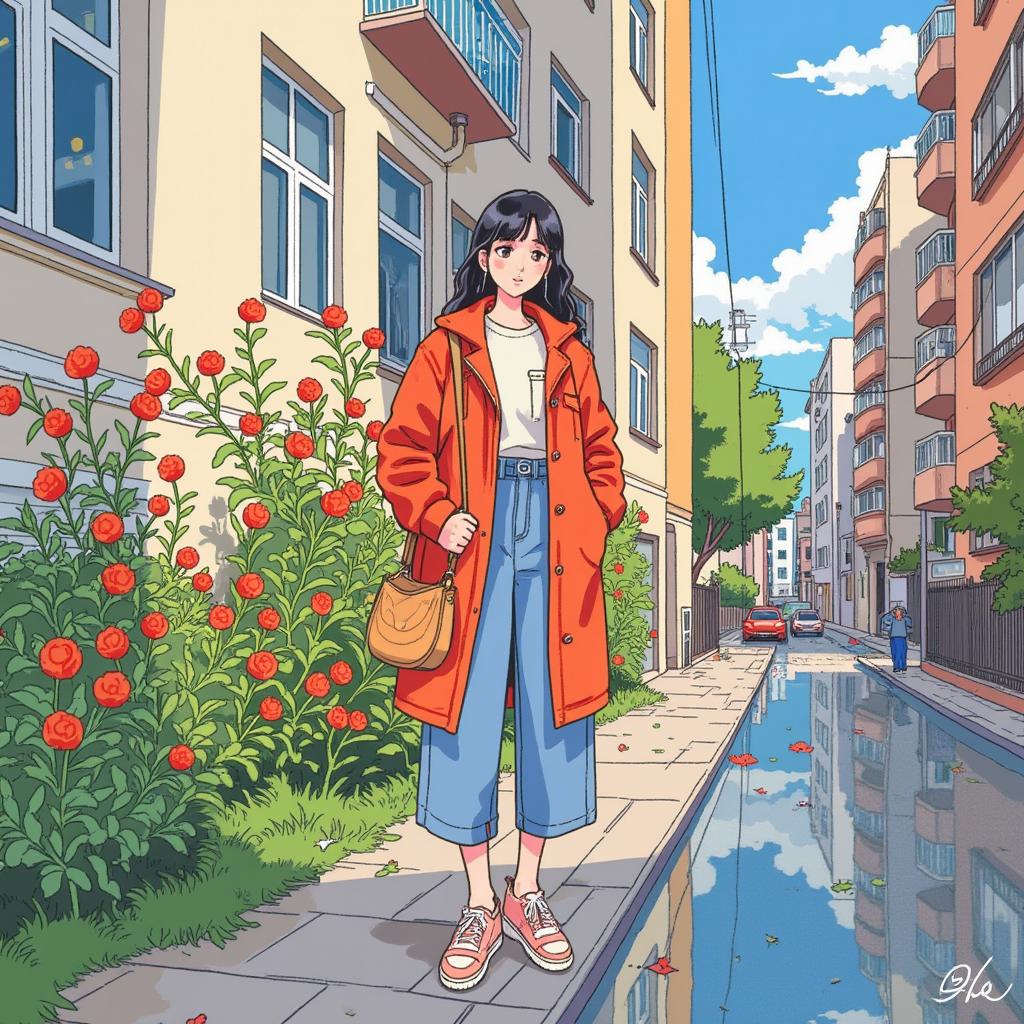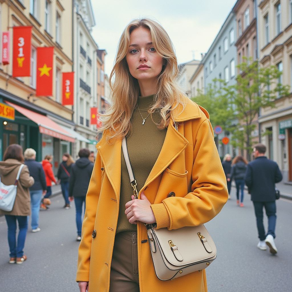 The central square of an old European capital is bathed in the golden light of an autumn sunset. A majestic tree sheds a carpet of orange and red leaves, covering vintage cars—a convertible, a sedan, and a van—parked nearby. Ornate street lamps are draped with golden garlands., , The café terraces are bustling with people enjoying coffee and pastries. A couple strolls hand-in-hand, a child plays in the leaves, and an old man feeds pigeons while his Labrador runs nearby. The soulful music of a guitarist, a saxophonist, and a double bass player fills the cool air, which carries the scents of coffee, baked goods, and earth. The entire scene is a perfect, serene autumn moment., ,