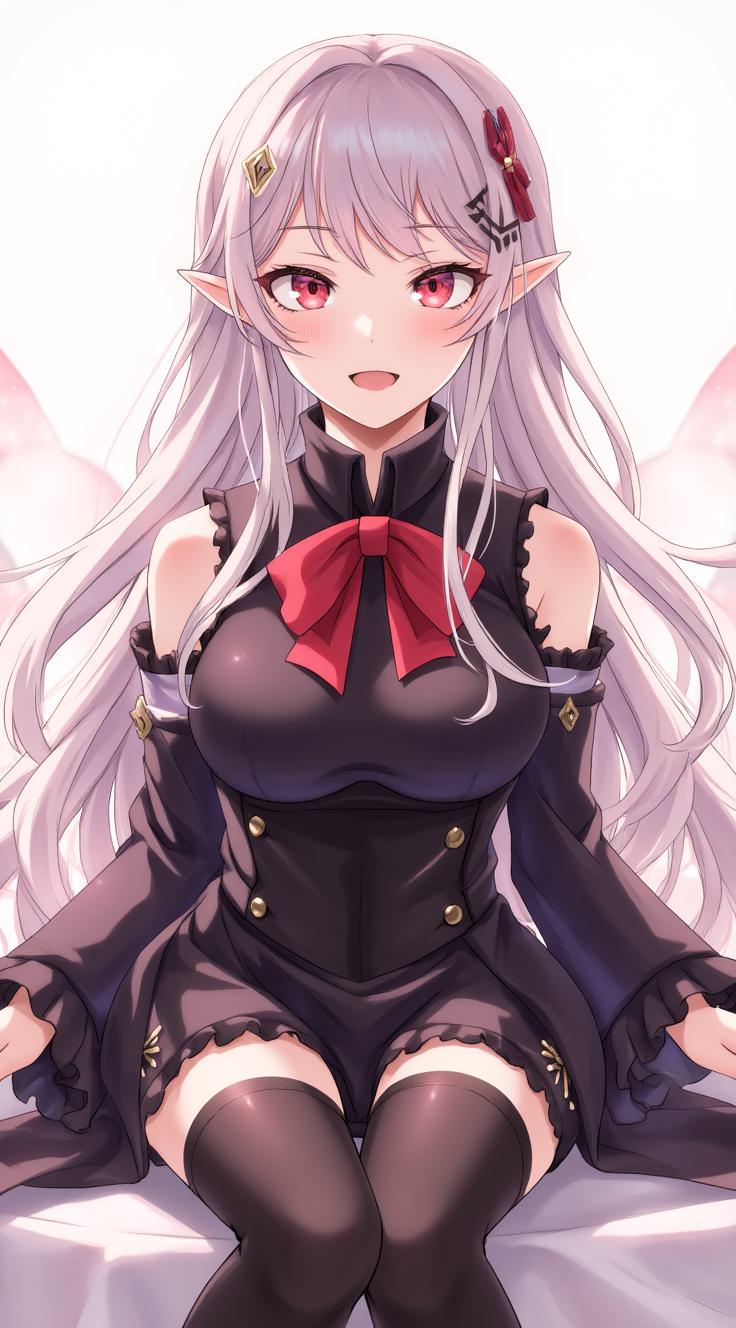 Rina Tanaka, 'The Ghost', a young female hacker from My Hero Academia world. She is half-lying across a high-tech desk in a dim server room, surrounded by holographic screens. She wears a disheveled, unbuttoned silk blouse revealing a lacy black bra and a vibrant, colored snake-and-cherry-blossom tattoo on her chest and collarbone. Her skirt is hitched up high on her thigh. She holds a tablet in one hand, giving a lazy, provocative smirk over her shoulder at the viewer. My Hero Academia anime style, detailed linework, vibrant colors, dramatic neon lighting from the screens, atmosphere of cyberpunk decadence.