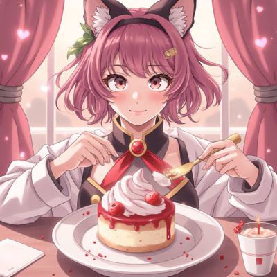Нарисуй парня в стиле аниме. Фембой. Русые волосы к концам переливаются в серо-вишнёвый. Длинные волосы заплетённые в косу. Чёлка частично закрывает лицо. Оранжевые глаза с узкими зрачками. Присутствует небольшой румянец. Похотливая улыбка, видны клычки. Он одет в молочного цвета обтягивающую майку. На шее чёрный чокер, завязанный чёрной ленточкой пантиком, на концах чокера образуются складки.