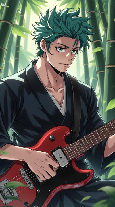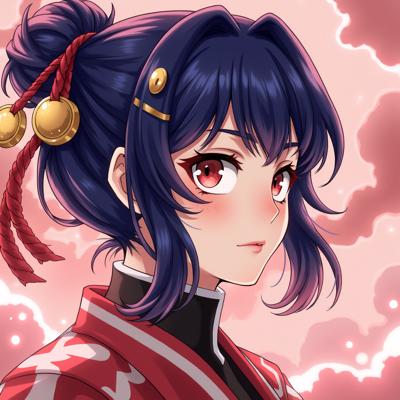 Нарисуй по аниме клинок рассекающий демонов:, *Такеоми девушка у неё были тёмно синие волосы до плеч которые были собранны в ПУЧОК а концы волос были покрашенны в ярко красный в этот пучок была воткнута ярко жёлтая шпилька на которой были небольшие не сильно толстые но крепкие нити на которых были бубнцы у неё были ярко зелёные глаза рост 177см она была очень яркой так же у неё была родинка небольшая над губой которая словно добавляла какой то милоты Такеоми была похожа на ребёнка со своими щёчками и большими глазами у неё так же была открытая форма тоесть короткая юбка и открытая грудь а ГРУДЬ И БЁДРА У НЕЁ ПЫШНЫЕ(БОЛЬШИЕ)*