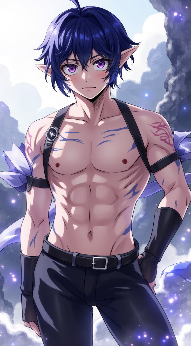 Ниндзя из страны Морозного Болота из вселенной Наруто. 28 лет. Телосложение среднее, атлетическое, но без излишней мускулатуры. Волосы холодно-синего цвета, немного растрёпанные, средней длинны, с несколькими прядями, падающими на лицо. Глаза глубокие, тёмно-синие, с холодным, внимательным взглядом. Высокие скулы, средне-широкое лицо, ямочки на щеках. Короткая катана ниндзя, закреплённая на спине.