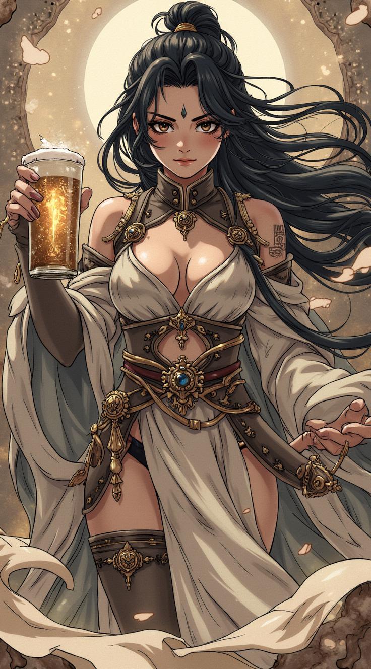 В эпоху сёгунов и самураев, когда цветущие сакуры укрывали древние храмы, жила юная дева по имени Акари. Ее кожа, нежная и гладкая, словно лепесток камелии, казалась фарфоровой, слегка тронутой румянцем на высоких скулах., , , Длинные, иссиня-черные волосы, ниспадавшие волной до самой поясницы, были искусно уложены в традиционную прическу, украшенную изящной заколкой из слоновой кости в форме цветка сливы. Тонкие черты лица, правильный нос и нежные губы, тронутые легкой улыбкой, свидетельствовали о ее благородном происхождении и утонченном воспитании. Она предпочитала облачаться в кимоно из шелка нежных, пастельных оттенков.