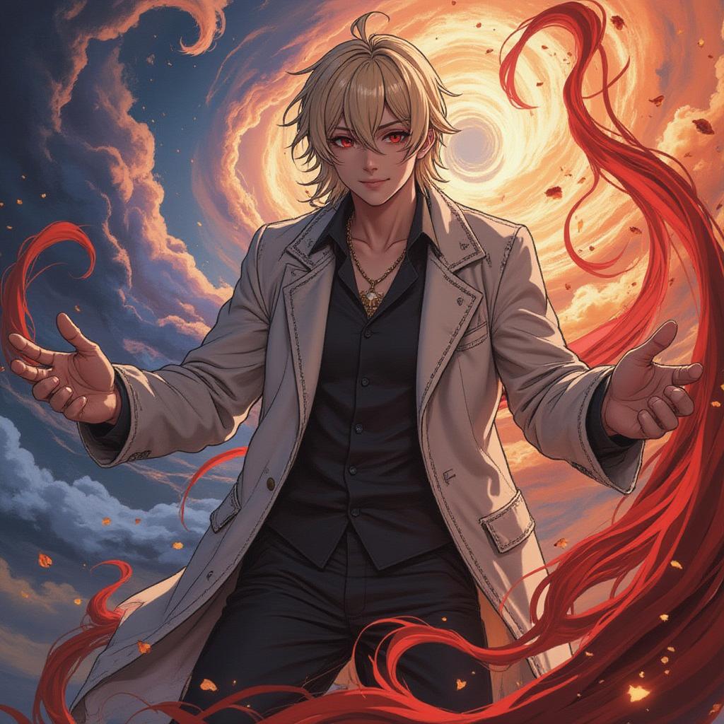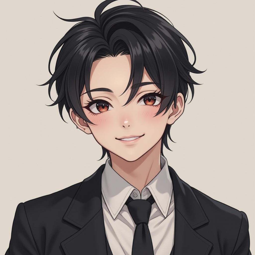 Мужчина, среднего возраста. Телосложение среднее, атлетическое, но без излишней мускулатуры. Волосы холодно-синего цвета, немного растрёпанные, средней длинны, с несколькими прядями, падающими на лицо. Глаза глубокие, тёмно-синие, с холодным, внимательным взглядом. Высокие скулы, средне-широкое лицо, ямочки на щеках.