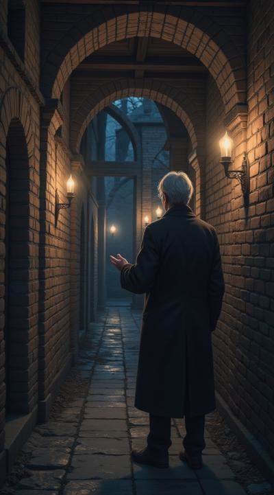 Коридор замка в ночи, кирпичные стены освещает свет от огней факелов,к испуганному мужчине из тени выходит кто-то протягивая свои руки ., В ночи затухнут свечи,, Сквозь темень - шагов звук,, На неизвестном языке речи,, Протянет к тебе пальцы своих рук..., Старик, что своё отжил,, Но выйдет, будто совсем юн, он в свет,, И не покажет только своих сил., Задай ему вопрос - он даст ответ., Имя назови его ты верно -, Проклятье гнева избежишь,, Не то закончишь жизнь скверно,, Пока в безмолвии запела тишь., Он - тот, чье имя всюду на устах,, Тот, что был всегда и всюду рядом,, Ветром за окном - тот первобытный страх,, Истины Хранитель, ведь и капля станет горьким ядом.