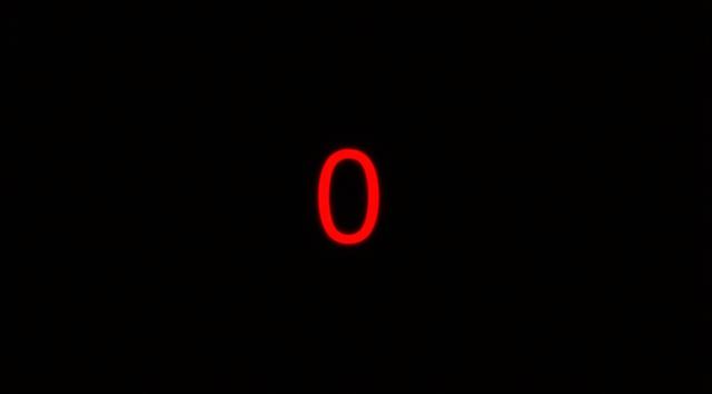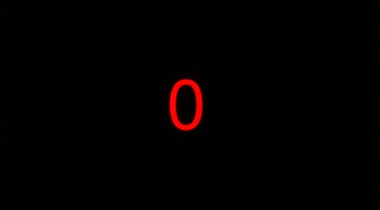 девушка сидит боком в белом лабораторном халате на черном. У нее короткие темные-синие волосы и она смотрит вниз. Девушка без обуви, на ней надеты черные чулки. Одна нога прямая, другая согнута приподнятым коленом. На черном фоне за ней расположена красная светящиеся цифра 0. Цифра 0 не так сильно отражается на поверхности.