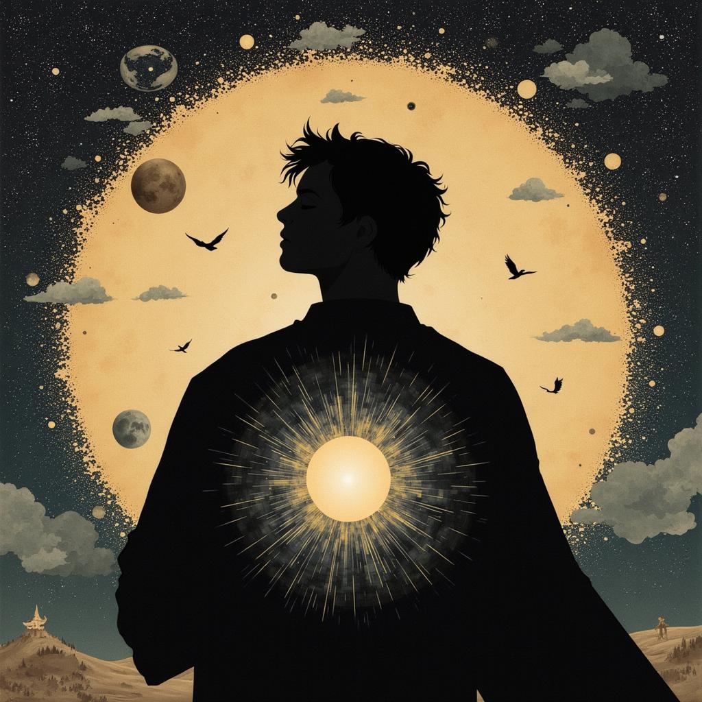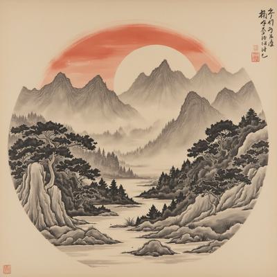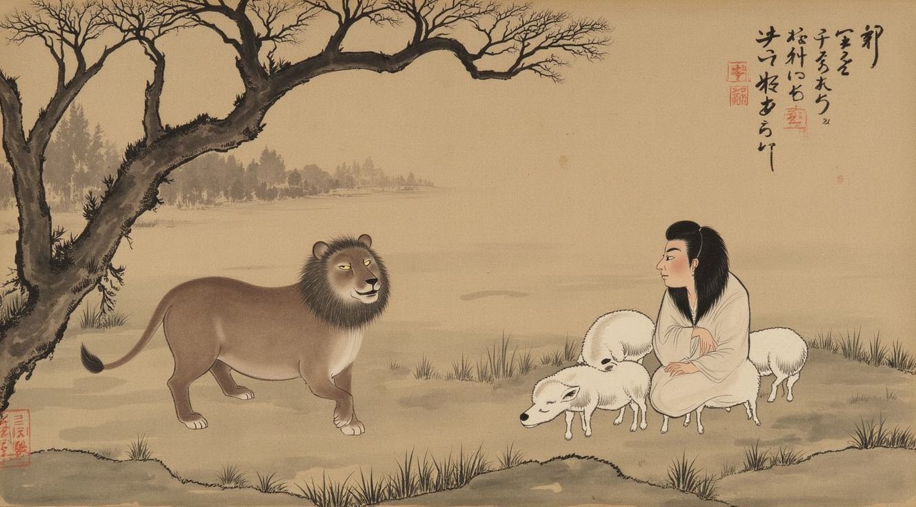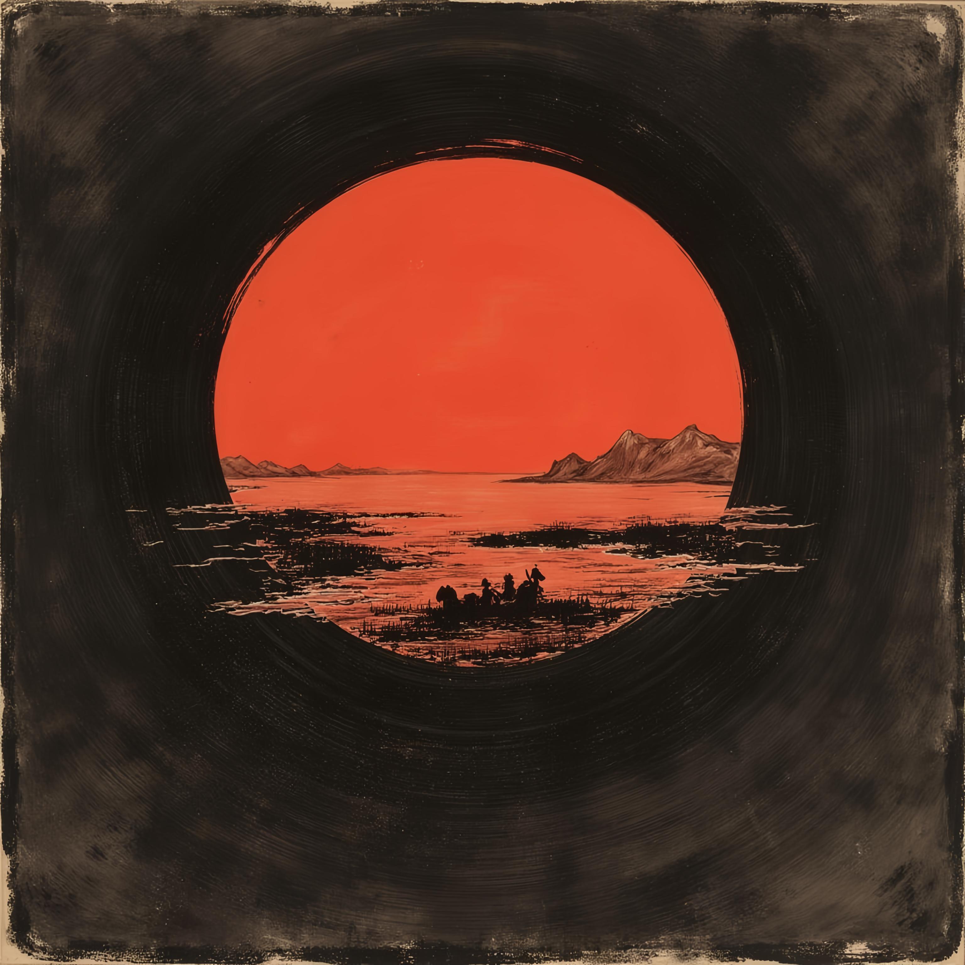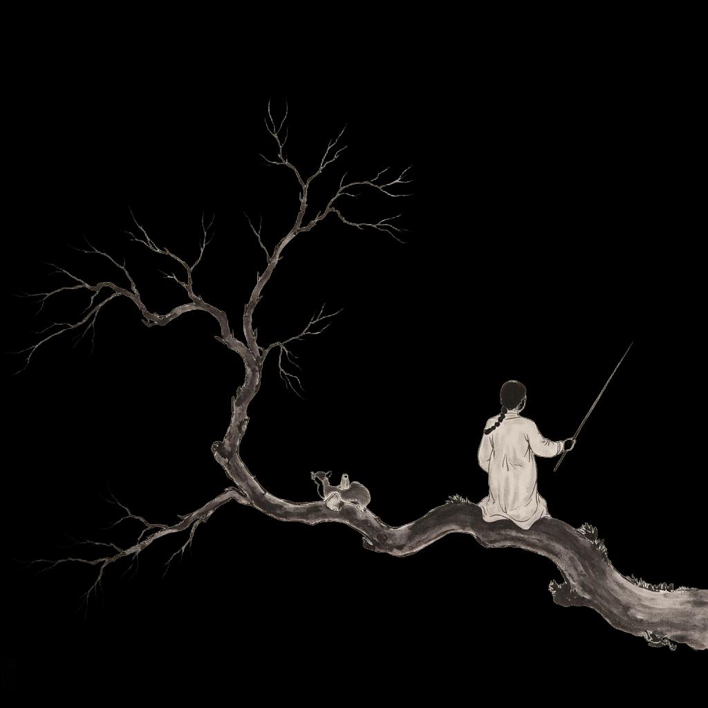 , Силуэтная ЧЕРНО -БЕЛАЯ графика. Арабеска. В представленном картине наблюдается сочетание элементов сюрреализма, абстрактного импрессионизма и минимализма. Композиция включает образ двух тигров в бодрой позе , расположенного на фрагменте утёса, на фоне ветки бамбуковых зарослей , палитра ограничена и выдержана в чёрных, серых, светло-коричневых и охровых тонах, что подчёркивает сдержанность и лаконичность стиля, характерного для минимализма, при этом сохраняя эмоциональную глубину и загадочность, присущие сюрреализму и абстрактному импрессионизму.