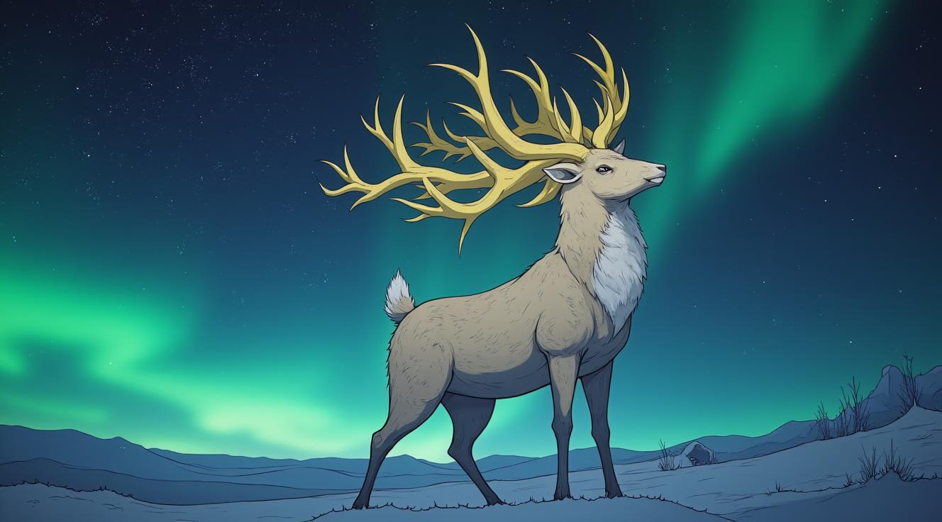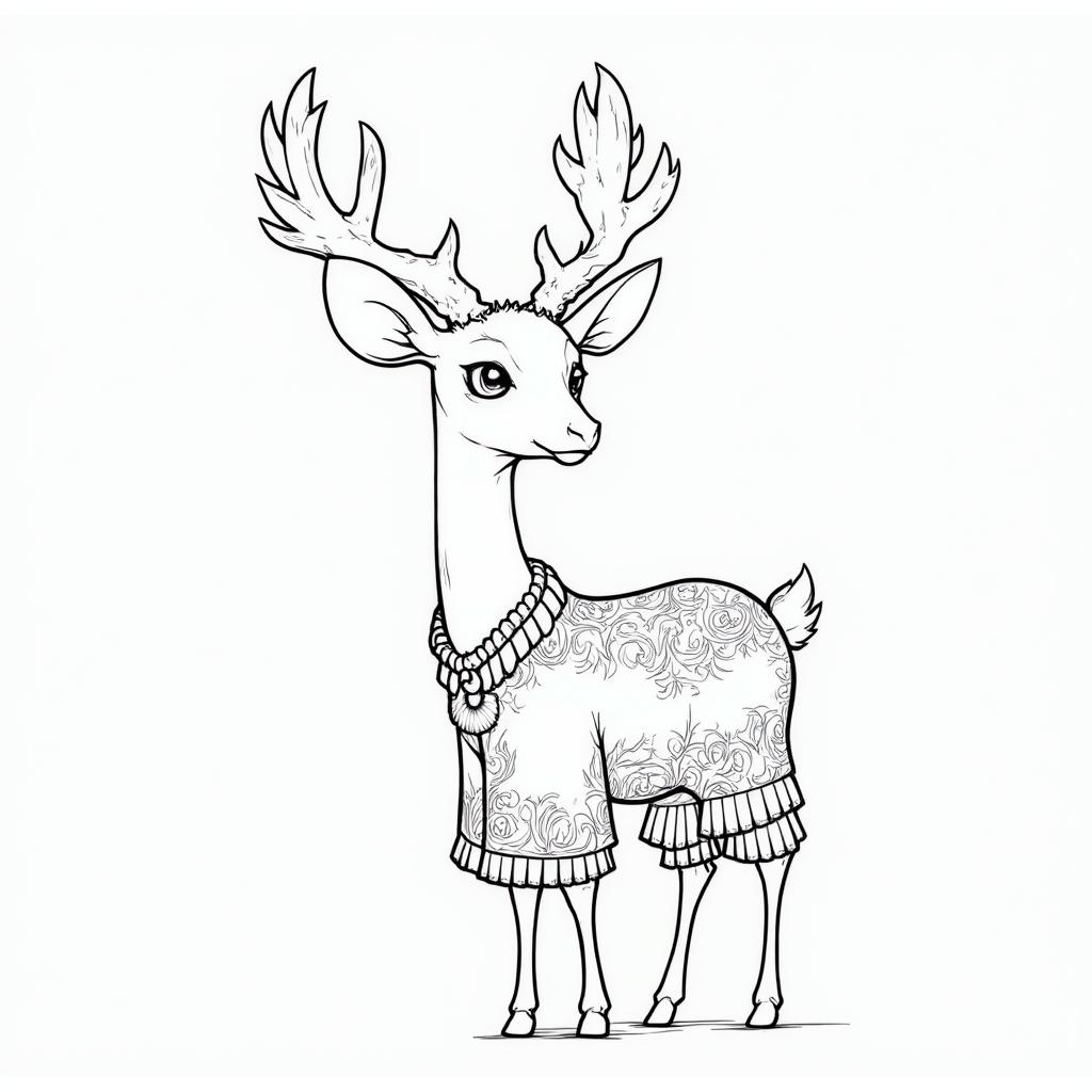 белый олень в народной одежде чувашей в полный рост милый рисунок