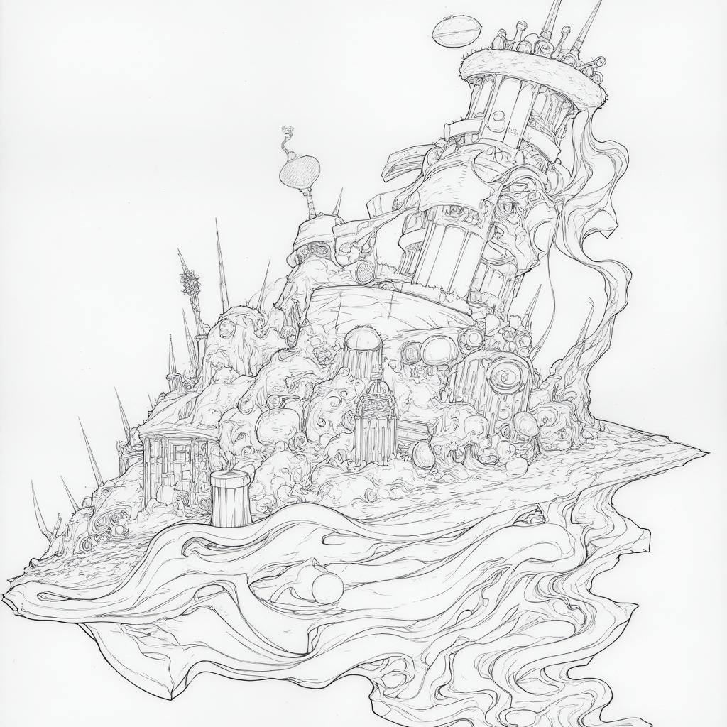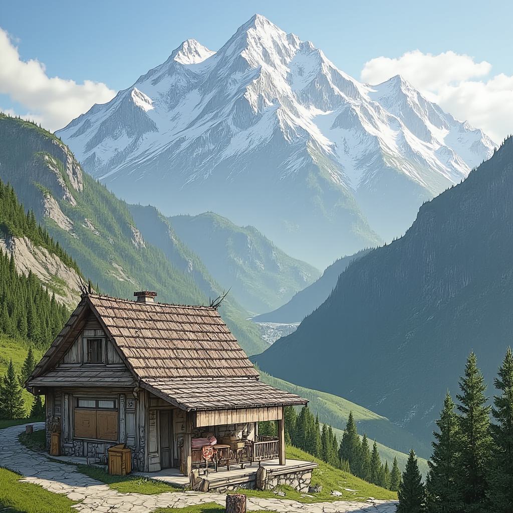 Волшебный пейзаж для детской сказки. Гигантский утес, похожий на древнего великана, в расщелине которого растут светящиеся цветы. По его каменной щеке скатывается одна бриллиантовая капля росы. В небе далеко-далеко улетает сияющая тучка-путешественница. Стиль волшебного реализма, мягкое освещение, глубокие цвета.