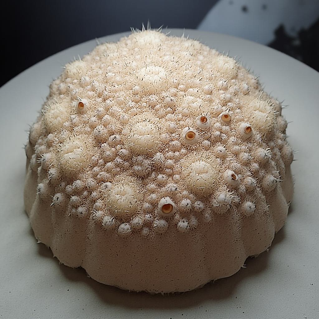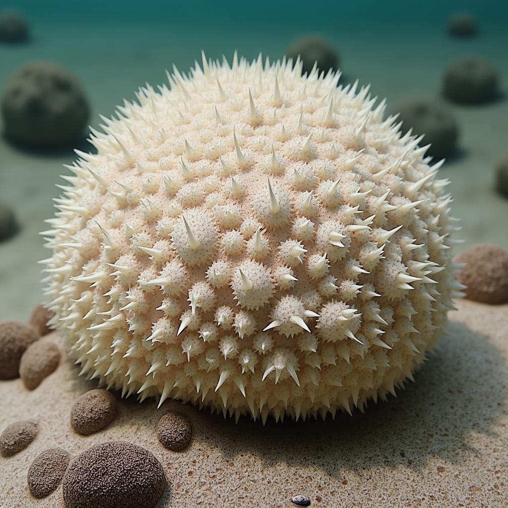 небольшое мягкотелое животное диаметром 1–5 см, по форме отдалённо напоминающее гибрид морской губки и миниатюрного морского ежа., , Основные черты:, , Очертания тела. Неправильная сферическая или слегка сплюснутая форма без чётко выраженных отделов. Контуры неровные, бугристые — из‑за многочисленных выростов и иголок., , Поверхность. Вся покрыта множеством тонких жёстких иголочек длиной 2–8 мм. Иголки растут густо, почти без просветов, создавая эффект «колючего шара». У основания каждой иголки заметна небольшая утолщённая капсула — резервуар с кислотой.