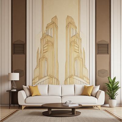Вы можете создать орнамент в стиле ар-деко, который можно органично вписать в ваш интерьер. Концепция «вертикального ритма» подчеркивает движение вверх, символизируемое первыми высотными зданиями. Используйте цвета хаки и золота с добавлением светлых оттенков. Покажи картинкой в формате скетча, чтобы был виден процесс его создания