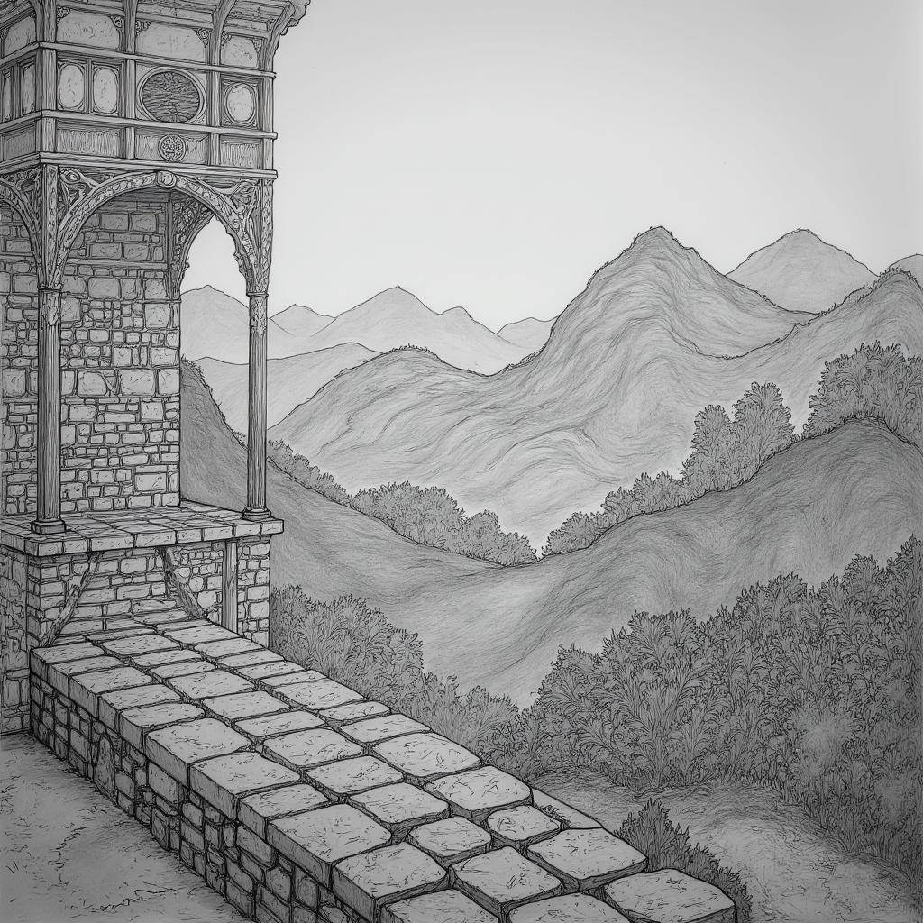 каменный выступ в окружении холмов в предгорьях похожий на кабаний клык