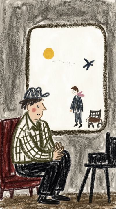 Поезд медленно плывёт сквозь туман. В купе — пожилой мужчина смотрит в окно. Слева на стекле — его детство: мальчик запускает воздушного змея в золотом свете. Справа — будущее: пустое кресло-коляска у окна. Дождь стекает по стеклу, размывая образы. В отражении — разные версии его самого. Множество времён, эмоционально, сюрреализм, чёрно-белое с тёплым оттенком в воспоминаниях, кинематографично, 4K