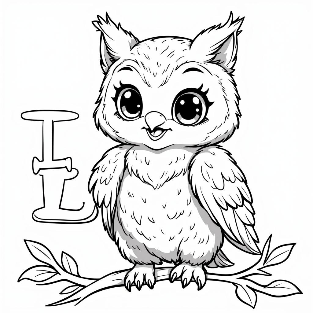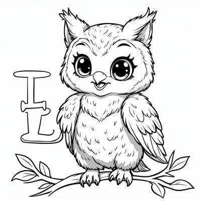Красивая сова держит букву А яркая раскраска